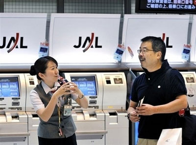 日航機場共人員為滯留乘客辦理手續(xù)。