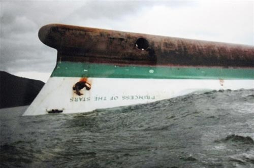 兩萬三千噸的“群星公主”號二十日自馬尼拉港航向菲律賓中部的宿務(wù)省,因遭遇風神臺風吹襲,而于二十一日中午在羅布倫省海域翻覆沉沒,根據(jù)船客登記簿,全船載有七百四十七人,包括許多兒童。