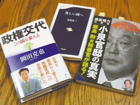 在野的民主黨黨魁小澤一郎在政黨輪替呼聲高的06年一口氣出版《小澤主義》和《剛腕維新》2本書(shū),民主黨副黨魁岡田克也《政權(quán)輪替》也在為執(zhí)政敲邊鼓。