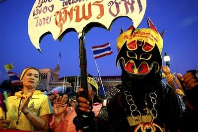 泰國的反政府示威者誓要推翻總理沙馬政府,對于緊急狀態(tài)令都嗤之以鼻,他們相信泰王受到威脅,愿為泰王而死。