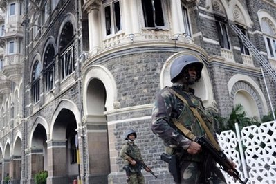 印度特種部隊(duì)30日完成了在泰姬瑪哈酒店的作戰(zhàn)任務(wù),并在這個(gè)地標(biāo)性建筑中搜尋了尸體和沒(méi)有爆炸的手榴彈。當(dāng)特種部隊(duì)完成搜索登上巴士的時(shí)候,酒店外的路人向他們歡呼。