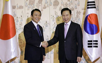 李明博與麻生將于12日舉行會談。韓國總統(tǒng)府此前說,雙方將重點討論共同應(yīng)對經(jīng)濟危機,雙邊自由貿(mào)易協(xié)定和朝核問題等。