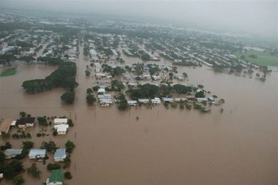 澳大利亞北部則是一夜之間洪水泛濫,350厘米的雨量導致大水沖進城鎮(zhèn),造成河水高漲。昆士蘭幾乎全成了災區(qū),最近兩次颶風所帶來的暴雨淹沒了100萬平方公里的土地與3000民宅。蔗田與畜牧業(yè)也遭受洪水肆虐,數(shù)以萬計的牲畜死亡。