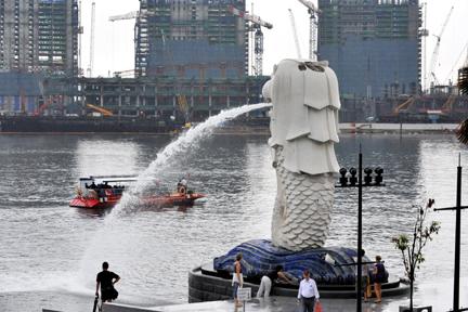 高8.6米,重70噸的魚尾獅塑像是已故新加坡著名工匠林浪新在1972年制作完成。2002年,它從伊麗莎白大道遷到浮爾頓1號大廈旁的新加坡河畔。
