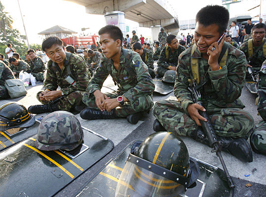當(dāng)?shù)貢r(shí)間中午12時(shí)半,泰國(guó)警察總局官員和“紅衫軍”主要領(lǐng)導(dǎo)人在總理府前進(jìn)行談判,隨后“紅衫軍”領(lǐng)導(dǎo)人通過(guò)擴(kuò)音喇叭通知集會(huì)在總理府附近的示威者解散集會(huì)回家。示威者今天將通過(guò)曼谷四個(gè)車(chē)站分乘大巴返回北部、東北部等地。