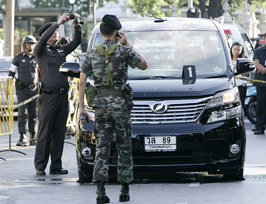 中新網(wǎng)4月17日電 綜合外電報(bào)道,泰國(guó)人民民主聯(lián)盟(PAD)領(lǐng)導(dǎo)人林明達(dá)(Sondhi Limthongkul)所乘坐的汽車在17日早晨遭到槍手襲擊,林明達(dá)受輕傷,但其司機(jī)傷勢(shì)嚴(yán)重。