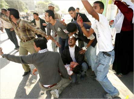 目擊者說,當示威人群譴責哈馬斯武裝力量充當什葉派穆斯林當權的伊朗的代理人時,保安部隊開始向示威者開槍。