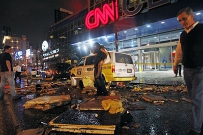 據(jù)報(bào)道,喬治亞圓頂體育場(chǎng)、CNN總部大樓和百年奧林匹克公園附近一帶是遭受龍卷風(fēng)襲擊最嚴(yán)重地區(qū),街頭一片狼藉,到處是碎玻璃、磚塊、甚至還有被風(fēng)卷出的桌椅,