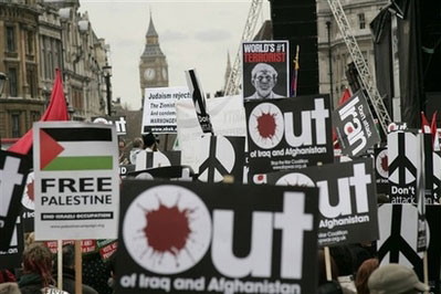 據(jù)香港《文匯報》報道,示威組織表示有4萬人參與倫敦的示威,警方說只有1萬人參與。在特拉法加廣場,自由民主黨的上議院議員唐格表示,伊戰(zhàn)是錯誤文件證據(jù)支持的非法行為。綠黨的歐洲議會議員盧卡斯更指前首相布萊爾和現(xiàn)首相布朗犯了戰(zhàn)爭罪行,要求審訊他們。