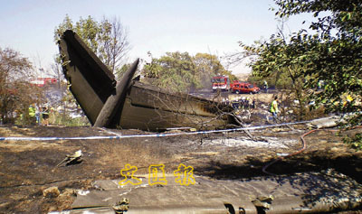 發(fā)生空難的地面一片焦黑,可見斷開的機尾。