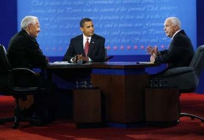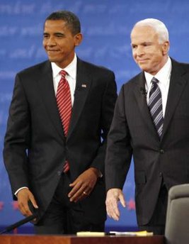 中新網(wǎng)10月16日電 綜合報(bào)道,美國共和黨總統(tǒng)候選人麥凱恩和民主黨總統(tǒng)候選人奧巴馬于美東時間15日晚上9時(北京時間16日早上9時)在紐約霍夫斯特拉大學(xué)展開總統(tǒng)選舉投票前的最后一場電視辯論。