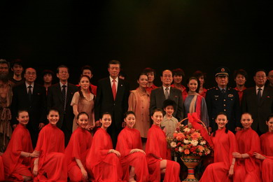 中新網(wǎng)10月27日電 中國駐朝鮮大使館網(wǎng)站消息,10月25日晚,朝鮮東平壤大劇場(chǎng)內(nèi)座無虛席,中國人民解放軍空軍政治部文工團(tuán)大型現(xiàn)代舞劇《紅梅贊》在這里隆重上演。朝鮮最高人民會(huì)議常任委員會(huì)委員長金永南、內(nèi)閣總理金英日、人民武力部部長金鎰?wù)艽螏、最高人民?huì)議議長崔泰福、最高人民會(huì)議常任委員會(huì)副委員長楊亨燮、黨中央書記金己男、最高人民會(huì)議常任委員會(huì)秘書長崔永林、人民軍總政治局第一副局長金正閣大將、最高人民會(huì)議常任委員會(huì)副委員長金英大、內(nèi)閣副總理盧斗哲、保健相崔昌植、文化相康能洙等黨政軍領(lǐng)導(dǎo)人及有關(guān)部門負(fù)責(zé)人,中國駐朝鮮大使劉曉明及使館外交官、各國駐朝使節(jié)和朝鮮群眾約1500人觀看了演出。
