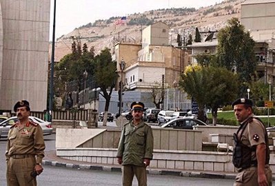 敘利亞士兵在美國(guó)大使館外巡邏。