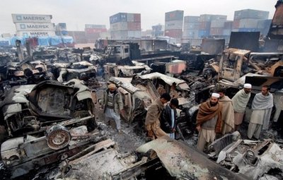 運(yùn)往駐扎在阿富汗內(nèi)陸地區(qū)的北約和美國軍隊(duì)的物資有70%以上是從巴基斯坦南部港口城市卡拉奇卸船,然后用卡車經(jīng)過白沙瓦送到目的地。但是軍用物資在白沙瓦和周圍的中轉(zhuǎn)站以及在通過開伯爾山口時(shí)頻繁受到塔利班激進(jìn)分子的襲擊。