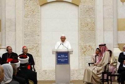 教皇其后到首都安曼最大的清真寺參觀,提到不少宗教紛爭背后受到政治操控,強調(diào)要與伊斯蘭教和諧共處。帶領(lǐng)教皇參觀的約旦王子加齊感謝教皇,就2006年發(fā)表傷害伊斯蘭教言論,表達遺憾。