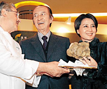 何鴻燊去年以約256萬港元投得一顆一點(diǎn)五公斤的世紀(jì)白松露菌王,并舉行盛大餐舞會(huì),與嘉賓分享愛心白松露菌,成為一時(shí)佳話。而昨晚除拍賣菌王之外,四地亦同時(shí)舉行16份較小型的白松露菌拍賣,參與嘉賓均踴躍競投,澳門方面更投得八顆,連同何鴻燊的“菌王”,一共籌得183萬元,四地善款合共達(dá)222萬港元。