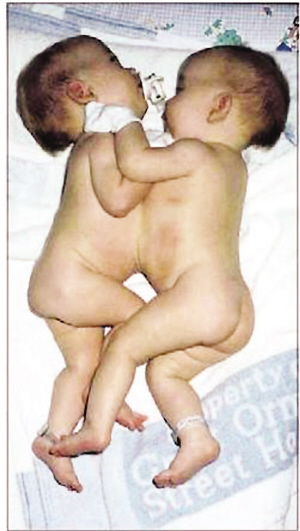 據(jù)統(tǒng)計,連體雙胞胎的出生率在新生兒中僅為20萬分之一。喬安最不愿意做的一個抉擇是,在2個寶寶中選擇一個存活,同時犧牲另一個。為此她終日祈禱。1997年4月6日,喬安在曼徹斯特市的圣瑪麗醫(yī)院經(jīng)剖腹產(chǎn)生下一對連體女嬰,取名為尼芙和愛法。喬安回憶稱:“看到2個小寶寶后,我的第一反應是她們是如此正常,僅僅是‘粘連’在一起而已。她們出生時互相擁吻著,其中一個的嘴唇緊貼著另一個,可愛極了!
