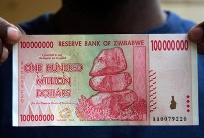 津巴布韋在7月間的通脹率是世界第一,高達2億3100萬%,國內(nèi)物價在一天之內(nèi),可能上漲好幾次,央行只有靠印鈔票來同物價賽跑。