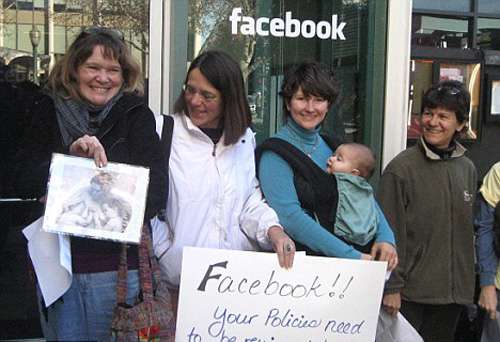 部分婦女更在Facebook位于加州帕洛阿爾托的總部前示威,抗議Facebook禁止女性哺乳相片。Facebook在未預先警告的情況下,刪除了數(shù)百名女用戶的哺乳照片,并通知她們?nèi)粼儆蓄愃普掌,將取消其賬戶。