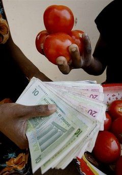 據(jù)印度IANS通訊社2日報道,去年8月,津巴布韋中央銀行宣布去掉鈔票后的10個零,但由于惡性通貨膨脹又漲了回來。目前,津巴布韋的通貨膨脹率已經(jīng)達(dá)到了百分之10億。周日,一美元可以兌換250萬億津巴布韋元。