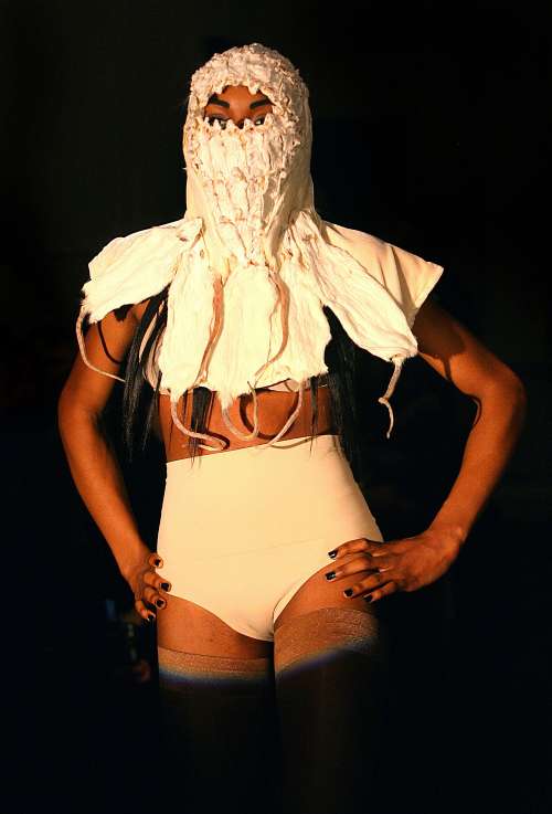 模特兒佩戴著這款遮蓋了整張臉,只露出眼睛的頭飾,在天橋上婀娜多姿地走過(guò),老鼠尾巴在額前晃來(lái)晃去,鼠須輕輕碰觸她的皮膚。這款頭飾是法國(guó)出生的高級(jí)理發(fā)師查利-勒門杜的作品。