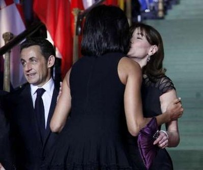 中新網(wǎng)4月5日電 美國(guó)總統(tǒng)奧巴馬與夫人米歇爾到訪法國(guó)時(shí)再施展魅力,連一向熱情奔放的法國(guó)第一夫人布呂尼(Carla Bruni)也似乎被他的魅力懾住,突然變得害羞起來(lái)。布呂尼本想以法式頰吻與奧巴馬打招呼,但卻中途改變主意,改為與奧巴馬握手。而她和奧巴馬夫人熱吻。這一含蓄舉動(dòng)成為民眾熱話。