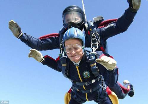 中新網(wǎng)4月5日電 據(jù)香港《大公報(bào)》六日援引外電報(bào)道,英國一位現(xiàn)年九十七歲的老人四日乘飛機(jī)從三千多米高空跳傘并安全返回地面,慶祝自己即將到來的九十八歲生日。