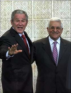 阿巴斯贊揚布什是第一個愿意承諾全力支持巴勒斯坦建國的美國總統(tǒng),并給予了紅地毯歡迎。