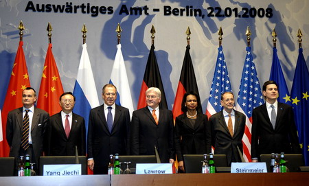 中新網(wǎng)1月23日電 據(jù)中國外交部網(wǎng)站消息,1月22日,中國、美國、俄羅斯、英國、法國、德國六國外長會(huì)議在柏林舉行。中國外交部長楊潔篪出席。會(huì)議就伊朗核問題安理會(huì)決議草案要素交換了意見,并就下一步總體方略進(jìn)行了有益的討論。與會(huì)各方同意繼續(xù)就此保持密切溝通與磋商。