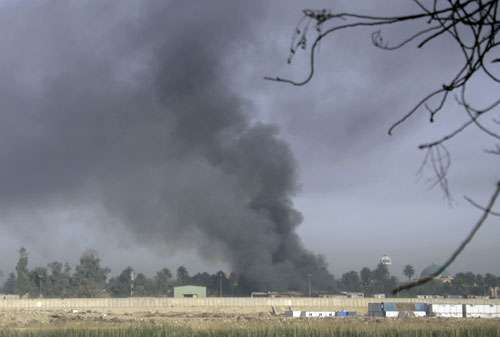 警方消息人士稱,巴格達(dá)東北部和巴卜謝赫市中心分別有一人遇襲喪生,致死的看來是誤發(fā)或沒有瞄準(zhǔn)目標(biāo)的“卡秋莎”火箭彈。美國駐伊大使館官員證實(shí),綠區(qū)受到“間接瞄準(zhǔn)射擊”,即火箭彈或迫擊炮射擊。綠區(qū)其中一處冒起沖天濃煙,當(dāng)局利用警報(bào)器高聲警告民眾躲避。第一輪襲擊后,美軍兩架攻擊直升機(jī)隨即前往巴格達(dá)東北部一個(gè)地區(qū)的上空盤旋。