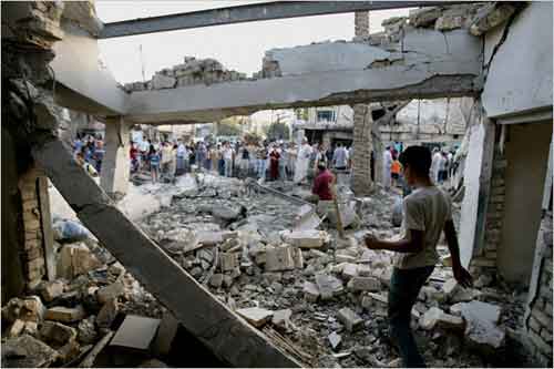 6月4日,伊拉克調(diào)查人員正在爆炸現(xiàn)場(chǎng)取證。爆炸將多所民宅完全摧毀。