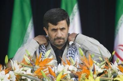 伊朗總統(tǒng)艾哈邁迪-內(nèi)賈德在21日的閱兵儀式上。