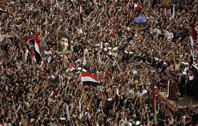另?yè)?jù)報(bào)道,伊拉克民眾擠滿(mǎn)了通向巴格達(dá)“天堂廣場(chǎng)”(Firdos Square)的道路。此次抗議集會(huì)由伊拉克什葉派主要反美人物薩德?tīng)柊l(fā)起。游行隊(duì)伍冒著小雨從巴格達(dá)城北的薩德?tīng)柍浅霭l(fā),一路游行至市中心的“天堂廣場(chǎng)”。