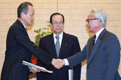 中新網(wǎng)6月12日電 據(jù)中國外交部網(wǎng)站消息,6月12日,日本兵庫縣前知事、紀念兵庫震災(zāi)21世紀研究機構(gòu)理事長貝原俊民在日本首相官邸向中方贈送了阪神地震災(zāi)后重建資料。日本首相福田康夫、中國駐日本大使崔天凱等出席贈送儀式。