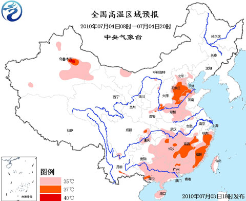 預(yù)計(jì),4日白天,江漢南部、江南大部、華南大部、貴州東部、重慶中西部、四川盆地東北部等地有35~37℃、局地38~40℃的高溫天氣。另外,北京中南部、河北大部、山西南部、河南北部和東部、山東西部、安徽北部、陜西關(guān)中地區(qū)等地的部分地區(qū)也將有35~37℃、局地38~39℃的高溫天氣。