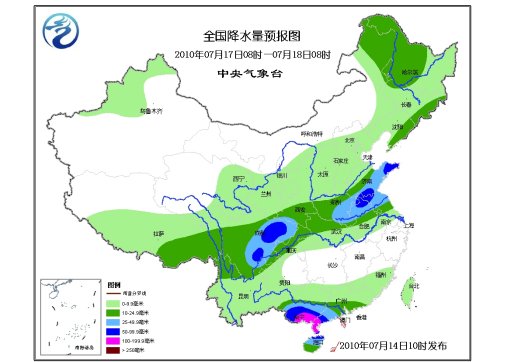 17日08時(shí)至18日08時(shí),新疆西部、西北地區(qū)東南部、華北大部、東北、黃淮、江淮、漢水流域、江南北部沿江、西南地區(qū)大部及華南大部有小到中雨或陣雨,其中四川盆地、黃淮、華南中南部的部分地區(qū)有大雨、局部暴雨或大暴雨,并將伴有短時(shí)雷雨大風(fēng)等強(qiáng)對(duì)流天氣。