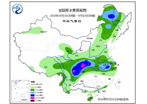 中新網(wǎng)7月15日電 據(jù)中央氣象臺預(yù)報,未來三天,四川盆地、淮河流域及廣東南部、海南、廣西南部沿海、陜西南部等地將有大雨或暴雨,部分地區(qū)有大暴雨;甘肅東南部、內(nèi)蒙古東北部、黑龍江西部等地將有大雨,部分地區(qū)有暴雨;上述部分地區(qū)并伴有短時雷雨大風(fēng)或冰雹等強對流天氣。