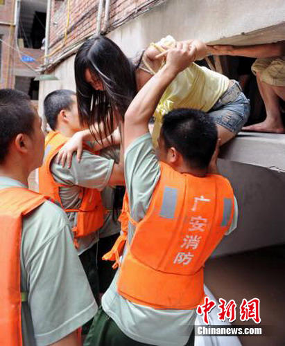 中新網(wǎng)廣安7月19日電(蘇坤明) 連日來的暴雨和洪水,造成四川渠江水位猛漲。截至19日上午11:02,廣安市城區(qū)洪水水位已達(dá)25.04米。來自廣安市抗洪防汛指揮部的消息稱,19日中午2時(shí)左右,最高洪水水位將達(dá)25.3米,超警戒水位線8.8米,這是廣安近200年來遭遇的最大洪水。
