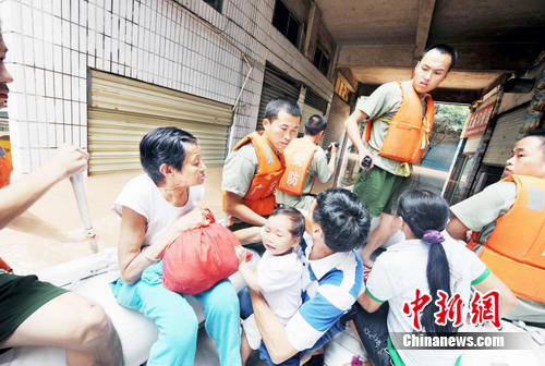 在特大洪水來臨之際,廣安市武警官兵充分發(fā)揮“特別能吃苦,特別能戰(zhàn)斗,特別能奉獻(xiàn)”的精神,積極戰(zhàn)斗在抗洪搶險(xiǎn)第一線,與洪水賽跑,與時(shí)間賽跑,深入街巷搜尋和和轉(zhuǎn)運(yùn)被洪水圍困的居民,確保群眾生命安全。 截至記者發(fā)稿時(shí),廣安目前還沒有因?yàn)楹樗斐傻娜藛T傷亡。(完)