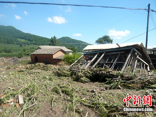一路上,記者看到多處房屋倒塌,一些車輛也被沖入河水中,有些人正在打撈。繼續(xù)前行幾公里之后,在一處下坡的位置,幾名路政人員將所有的車輛攔截到一旁,要求統(tǒng)一擺放,不要影響搶險車的通行。在停車位置不遠(yuǎn)處,一輛吊車正將一水泥管放入斷橋下。