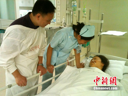 10點(diǎn)55分,又有一男性傷員從ICU病房推出來,看上去精神不錯(cuò),還可以向熟識(shí)的親人、朋友打招呼,爾后立即被送往住院部。