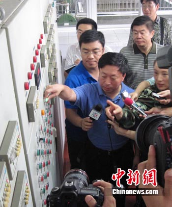 中新網(wǎng)通化8月4日電 (記者 吳兆飛 崔顏鋒)8月4日9時15分,吉林省通化市市長田玉林在當(dāng)?shù)貎羲畯S啟動了供水按鈕,這意味著經(jīng)過64個小時的緊張搶修,通化市終于恢復(fù)供水,預(yù)計在數(shù)小時后,33萬通化市民在家中將可以用上自來水。