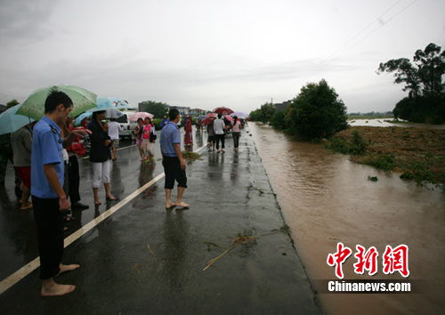 據(jù)介紹,眉山市東坡區(qū)、丹棱、洪雅、彭山遭遇暴雨到大暴雨,個(gè)別地方為特大暴雨。其中東坡區(qū)黃蓮埂水庫(kù)200.4mm、楊水碾162.5 mm、兩河口水庫(kù)141.7 mm,彭山縣保勝121.8 mm,丹棱縣城區(qū)137.6 mm,黨仲水庫(kù)124mm,丹棱縣石橋鄉(xiāng)135mm,中觀山120mm,梅灣120.5mm,東風(fēng)106.8mm,雙橋鎮(zhèn)105mm,勝利100m,仁壽縣黑龍灘水庫(kù)125.7 mm.14時(shí)岷江彭山站水位425.74米,流量6290立方米每秒,青衣江洪雅站水位455.22米流量7700立方米每秒。