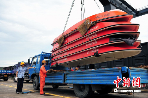 據(jù)了解,這批發(fā)往災(zāi)區(qū)的防汛物資包括沖鋒舟80艘、橡皮舟40只、船外機(jī)120臺、救生衣1萬件、鉛絲網(wǎng)兜4000個、查險燈500盞等,于8月19日通過鐵路開行“搶”17次專列發(fā)運到成都東貨場進(jìn)行轉(zhuǎn)運。