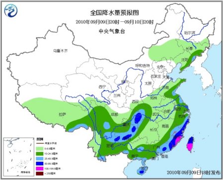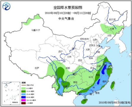 9日20時至10日20時,青海東南部、西藏大部、陜西東南部、內(nèi)蒙古東南部、吉林、遼寧、黃淮、江淮、江漢、江南、華南、西南地區(qū)大部等地有小到中雨或陣雨,其中,川西高原南部、重慶東部、湖北西南部、貴州中北部和西部、云南東北部、浙江東部沿海和南部、福建、廣東中東部和西南部、廣西南部、海南、臺灣等地有大雨或暴雨,福建東南部、臺灣南部等地局部有大暴雨;另外,西藏東南部、江蘇東北部等地的部分地區(qū)有大雨;上述部分地區(qū)并伴有短時雷雨大風(fēng)等強對流天氣。新疆西北部、內(nèi)蒙古中西部和東南部有4~5級風(fēng);廣東沿海、福建沿海、浙江南部沿海等地有6~8級風(fēng)。受“莫蘭蒂”的影響,臺灣海峽、臺灣以東洋面和以南海域、南海北部有7~8級大風(fēng),“莫蘭蒂”中心經(jīng)過的附近海域風(fēng)力有9~11級,陣風(fēng)可達(dá)12~13級;東海南部有5~7級東南風(fēng)。