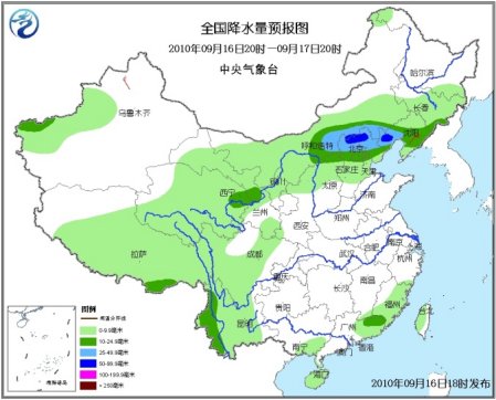 16日20時(shí)至17日20時(shí),新疆西南部、青藏高原中東部、西北地區(qū)東北部、內(nèi)蒙古中西部和東南部、東北中南部、華北中北部、四川中西部、云南大部、廣西南部、海南、廣東東部、福建大部、臺(tái)灣西部等地有小到中雨或陣雨,其中,內(nèi)蒙古中部偏南地區(qū)、河北北部、北京北部、遼寧西部等地的部分地區(qū)有大雨,局地暴雨;上述地區(qū)局部并伴有短時(shí)雷雨大風(fēng)或冰雹等強(qiáng)對(duì)流天氣。新疆大部、甘肅西部、內(nèi)蒙古東部、東北地區(qū)中北部等地有4~6級(jí)風(fēng);南疆盆地的部分地區(qū)有揚(yáng)沙或浮塵天氣。渤海將有5~7級(jí)東北風(fēng)。