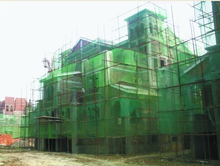 小區(qū)進(jìn)門處,碩大的工程規(guī)劃圖引起了記者的注意:這個(gè)小區(qū)的規(guī)劃是成棟的聯(lián)排別墅,廣告宣傳語標(biāo)有‘西班牙風(fēng)格別墅’字樣。小區(qū)內(nèi)建筑工人正在施工。