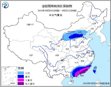 中新網(wǎng)9月20日電 中央氣象臺(tái)9月20日06時(shí)繼續(xù)發(fā)布暴雨藍(lán)色預(yù)警:9月20日08時(shí)到21日08時(shí),浙江東南部、福建東部和中南部、江西南部、湖南東南部、廣東大部、廣西東部、臺(tái)灣等地將有大到暴雨,福建東南部、廣東中東部等地的部分地區(qū)有大暴雨,局地有特大暴雨。