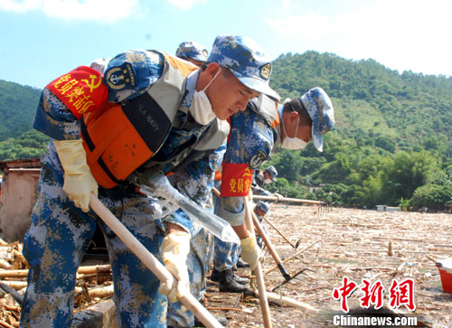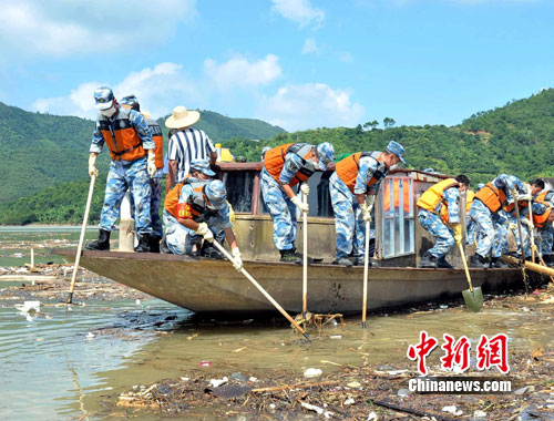 從昨夜開始,前期到達(dá)的部分官兵及工程車輛在高州重災(zāi)區(qū)馬貴鎮(zhèn),疏通道路、搜索失蹤人員、搶救物資;工兵分隊(duì)奔赴信宜市對(duì)危險(xiǎn)山體進(jìn)行爆破,部分陸戰(zhàn)隊(duì)員對(duì)廣東省第三大水庫(kù)高州水庫(kù)水面漂浮物進(jìn)行清理。指揮員張文勝上校告訴筆者,目前工程機(jī)械分隊(duì)連夜打通長(zhǎng)約1公里被泥石流堵塞的道路,清污的官兵已打撈起數(shù)十噸水面污染物,工兵分隊(duì)正在對(duì)爆破體進(jìn)行前期論證。 完