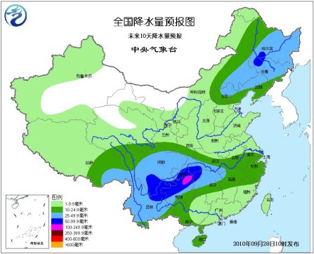 預(yù)計(jì)未來(lái)10天,西南地區(qū)東部陰雨天氣較多,降水量一般有30-70毫米,局部地區(qū)有80-120毫米;西北地區(qū)東南部、華北中部和北部、東北、江南北部、華南沿海有10-25毫米,局部有30-70毫米降水。